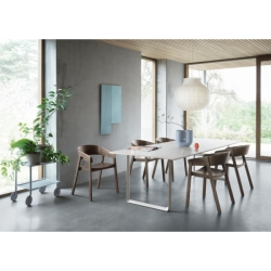 Skandinaavisen funktionaalinen muotokieli tekee pöydästä visuaalisesti miellyttävän ja monipuolisesti toimivan ja kestävät pöytälevymateriaalit linoleum, tammivaneri, Nanolaminaatti, massiivitammi ja laminaatti tekevät 70/70 pöydän sopivaksi sekä ruoka- että työpöytäkäyttöön.
