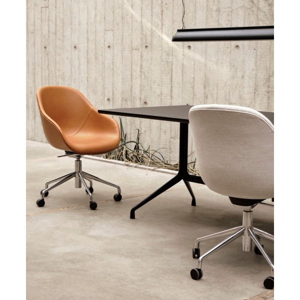 Pyöriväjalkaisen, pyörällisen ja korkeussäädettävän AAC 155 tuolimallin jalat ovat saatavilla aina joko mustaksi maalattuina tai kirkkaan alumiinisina. Jos haluat tuolin toisenlaisena versiona kuin verkkokauppamme tuolit, tilaa tuolit suoraan liikkeistämme - jossa verhoilumateriaalit ovat myös aina nähtävillä!