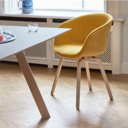 AAC 23 Soft kokoverhoillun tuolin, kuten muidenkin About a Chair -tuolien suunnittelun lähtökohtana on ollut luoda pelkistetty tuoli, joka toimii yhtä hyvin niin ruokapöydän kuin neuvottelupöydänkin äärellä. Suunnittelija Hee Welling onkin onnistunut yhdistämään tuolissa upean muodon, ergonomian ja estetiikan.