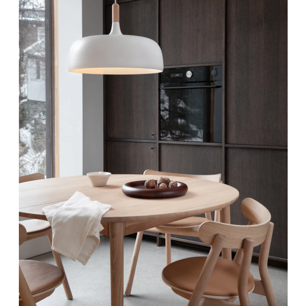Acorn on persoonallinen ja monipuolinen kotien valaisin, joka isokokoisena toimii hyvin yksittäisenä ruokapöytien päällä.