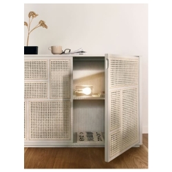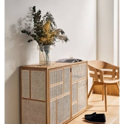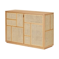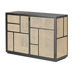 Mathieu Gustafssonin suunnittelema Air senkki on tunnelmallinen ja kevytrakenteinen läpikuultavien rottinkipaneelien takia. Kaappia voit käyttää tilanjakajana keskellä huonetta tai perinteisesti kaappina seinää vasten. Myös väri muuntaa senkin ilmettä - musta saa itseensä itämaisuutta, valkoinen koristeellisuutta ja herkkyyttä kun taas tamminen kaappi on selkeimmin skandinaavinen.