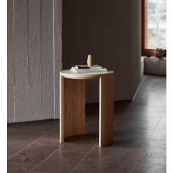 Sarjan sivupöytä on monikäyttöinen esine- se toimii samalla myös pienenä jakkarana.