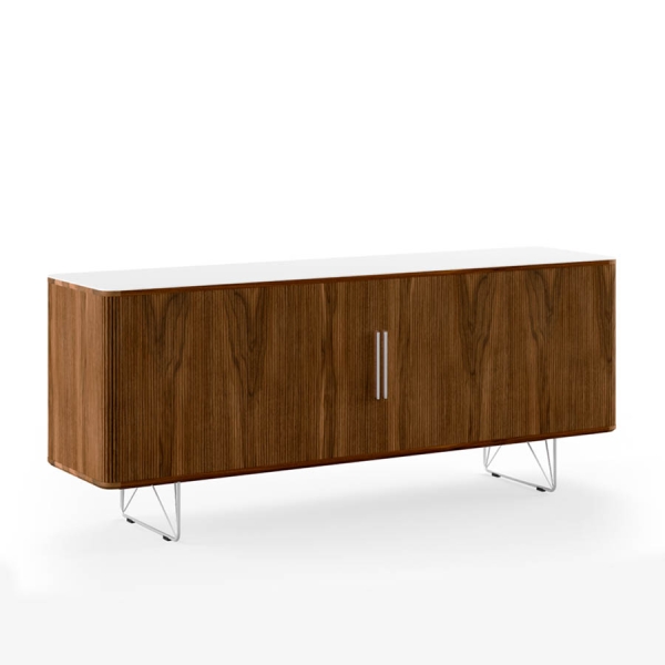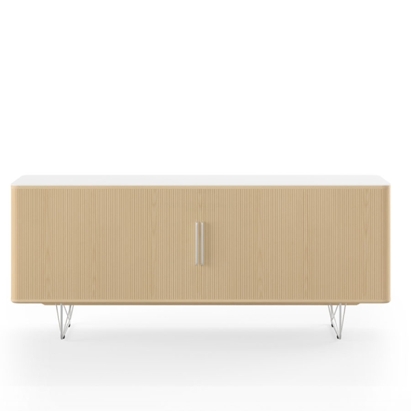 AK 2730 on klassinen senkki, joka on saanut modernia ilmettä Corian-kannen ja -kahvan sekä ruostumattomasta teräksestä valmistetulla jaloilla. Rulo-ovien pehmeiden muotojen ja kevyen pohjan yhdistelmä muodostaa tyylikkään senkkipöydän, joka sopii moniin kodin tiloihin.