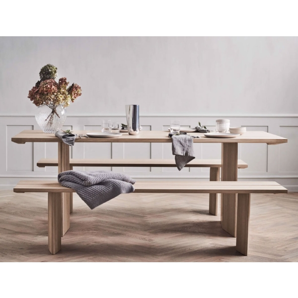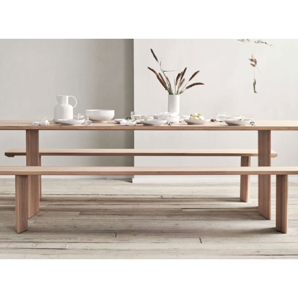 Alp-pöytä on helppo yhdistää Bolian erilaisten tuolisarjojen kanssa. Alp sarjaan kuuluu myös kaksi eripituista penkkiä (180 tai 240 cm pitkä).