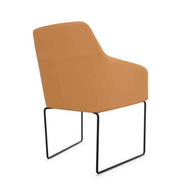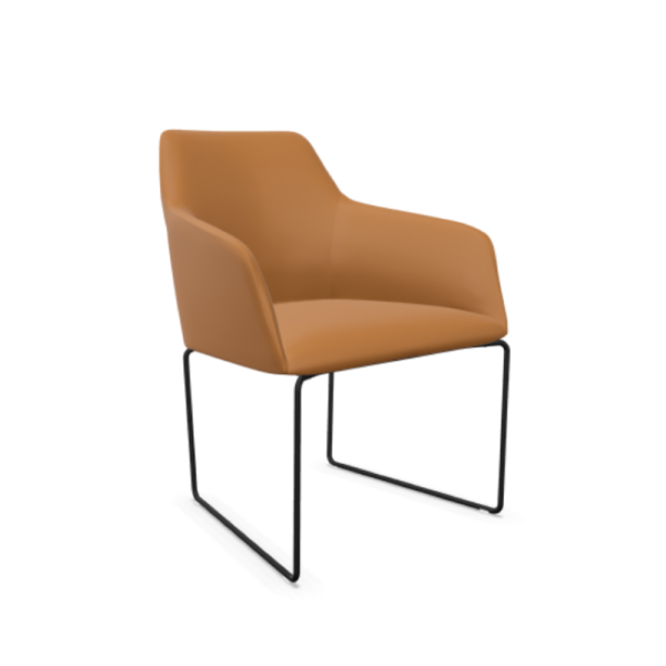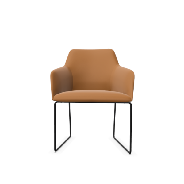 Tämä verkkokauppamme versio on kelkkajalkainen malli SO1535. Tuoli on verhoiltu ylellisellä Elmotique VII-aniliininahkalla, ja sen jalka on mustaksi pulverimaalattua terästä.
