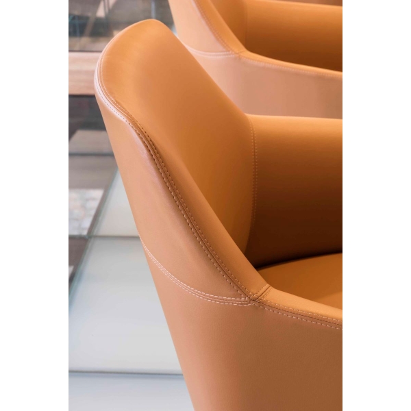 Alya-tuolia saa erilaisilla jalkarakenteilla varustettuna, sekä myös käsinojattomana versiona. Verhoiluvaihtoehtoja on tarjolla runsaasti erilaisia niin kangas- kuin nahkavaihtoehtoja. Verhoiluvalinnat vaikuttavat hintaan paljonkin; edullisimpien kangasvaihtoehtojen hinnat lähtevät noin 880 eurosta, kun taas tämä aniliininahkainen versio on vaihtoehdoista kallein. Jos olet kiinnostunut tuolista toisenlaisena versiona, ota yhteyttä suoraan liikkeeseemme.