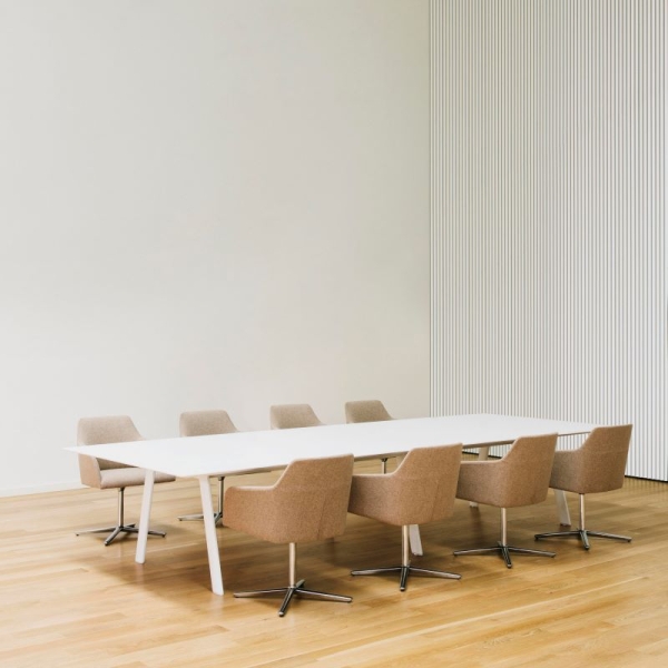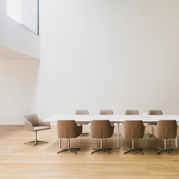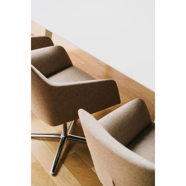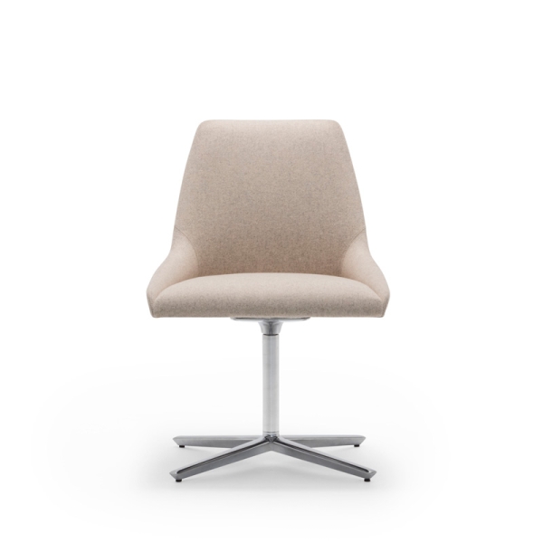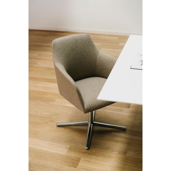 Tämä verkkokauppamme versio on käsinojaton, pyörivä malli SI1550. Tuoli on verhoiltu Divina Melange-villakankaalla, ja jalka on kiillotettua alumiinia.