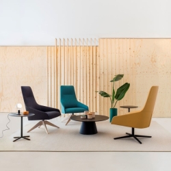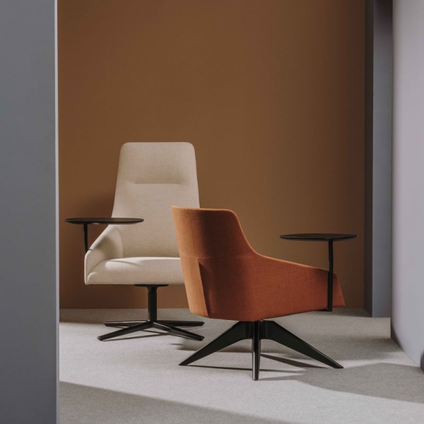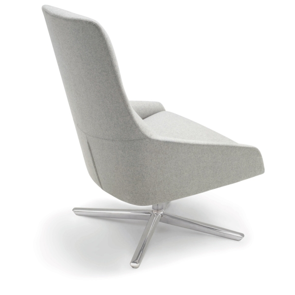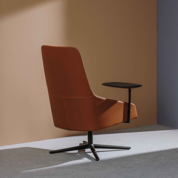 Tämä Alya High Back Lounge Chair on korkeaselkäinen, pyörivä nojatuoli self return-mekanismilla ja kallistusominaisuudella täydennettynä.