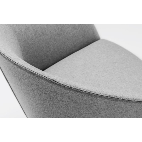 Tämä verkkokauppamme versio on malli BU1520, täydennettynä kallistusmekanismilla. Tuoli on verhoiltu Divina Melange-villakankaalla, ja jalka on kiillotettua alumiinia.
