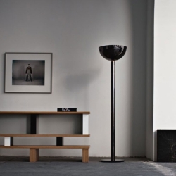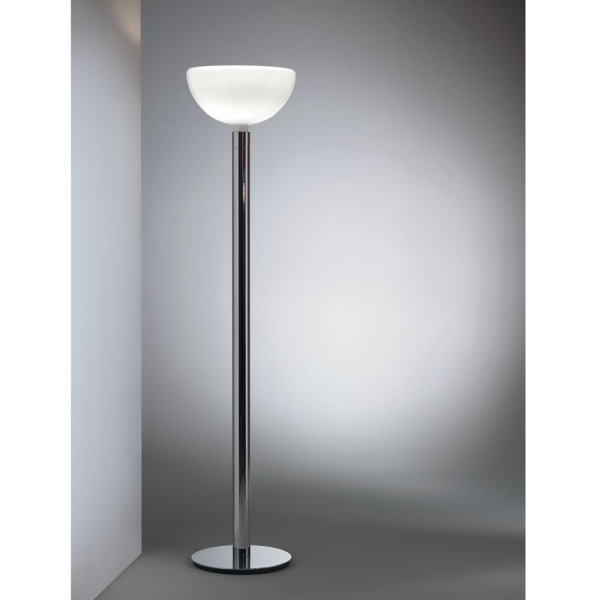 Kromirunkoinen, minimalistinen AM2C-lattiavalaisin kuuluu Nemon ”Collezione Albini”-sarjaan. AM2C-valaisimessa on opaalilasinen kupu, kun taas sen ”sisaruversiossa” AM2Z-valaisimessa kupu on metallia.