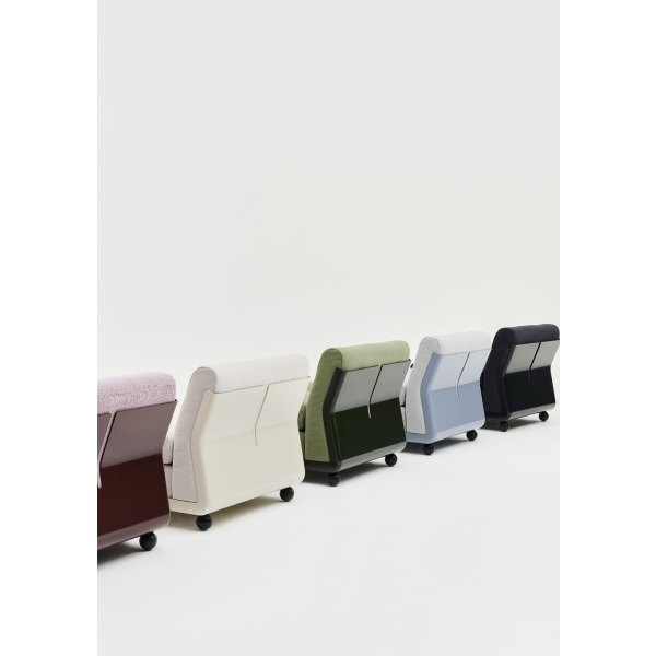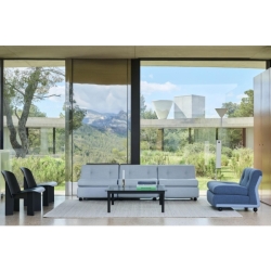 Sen veistoksellinen, matala siluetti ja modulaarinen muotoilu mahdollistavat erilaiset kokoonpanot yhdestä nojatuolista tilavaan nelimoduuliseen sohvaan.