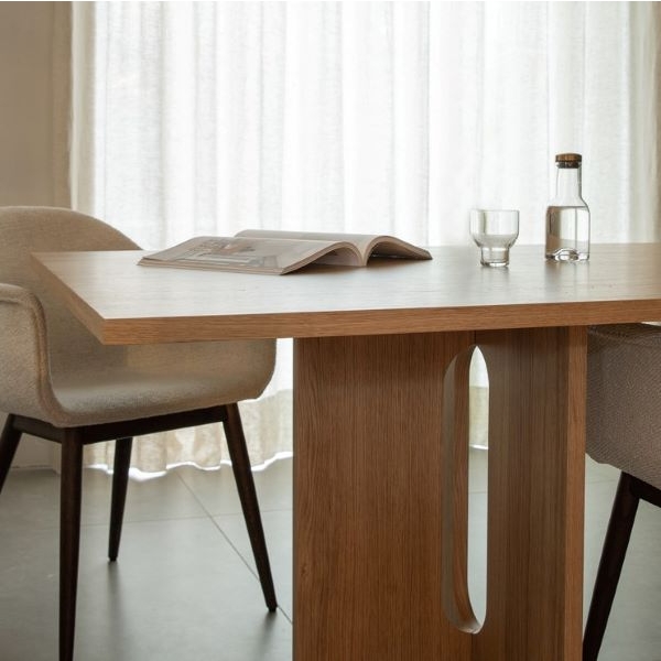 Androgyne ruokapöytä on ilmeeltään vakaa, elegantti ja ylellinen. Taidokkaat aukotukset ja materiaalivalinnat tekevät pöydistä dualistisen androgyynejä - maskuliiniset ja feminiiniset elementit ovat pöydissä tasapainossa.