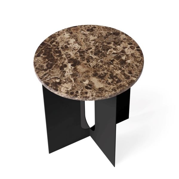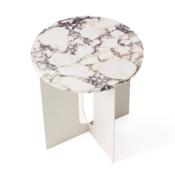 Alunperin Menun omaan kahvilakäyttöön suunniteltu Androgyne sivupöytä on ilmeeltään elegantti ja leikkisä, ei siis ihme että se nopeasti siirtyi itse tuotantoon. Pöytä koostuu teräsjalustasta, jota voit myös käyttää itsekseen pikkupöytänä sekä siihen liitettävästä, pyöreästä marmoritasosta joka kauniisti viimeistelee kokonaisuuden. Halutessasi voit yhdistää valkoiseen jalustaan mustan marmoritason ja päinvastoin.