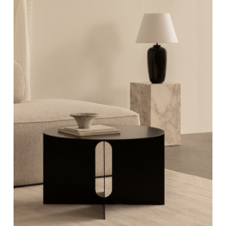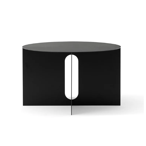 Alunperin Menun omaan kahvilakäyttöön suunniteltu Androgyne sivupöytä on ilmeeltään elegantti ja leikkisä, ei siis ihme että se nopeasti siirtyi itse tuotantoon.