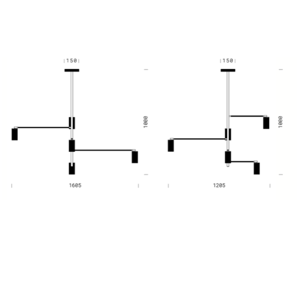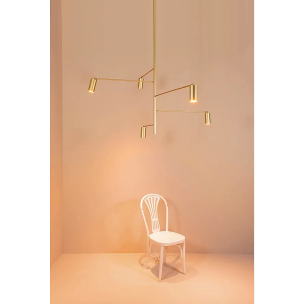 Minimalistinen Antenna con bicchieri riippuvalaisin levittäytyy horisontaalisesti tilaan mutta on ilmeeltään kevyt ja siro.