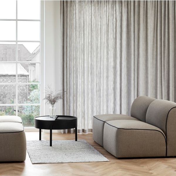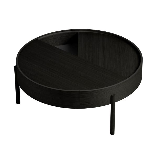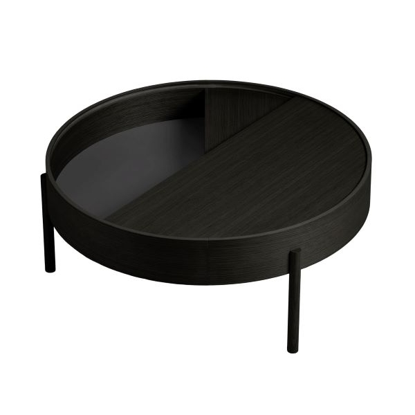 ARC -sohvapöytä leikittelee geometrisilla muodoilla: ympyrällä ja sen sektoreilla. Kääntyvä pöydän kansi kätkee sisäänsä kätevää säilytystilaa, joka joko piilottaa ei-toivotun tavaran, tai antaa mahdollisuuden sommitella esineitä kiinnostavasti kahteen tasoon.