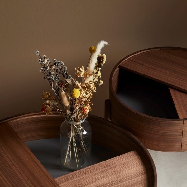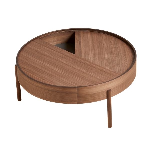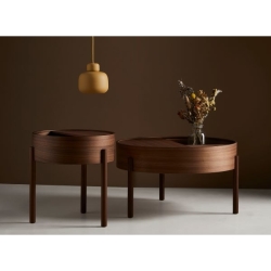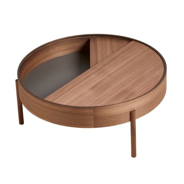 ARC -sohvapöytä leikittelee geometrisilla muodoilla: ympyrällä ja sen sektoreilla. Kääntyvä pöydän kansi kätkee sisäänsä kätevää säilytystilaa, joka joko piilottaa ei-toivotun tavaran, tai antaa mahdollisuuden sommitella esineitä kiinnostavasti kahteen tasoon.