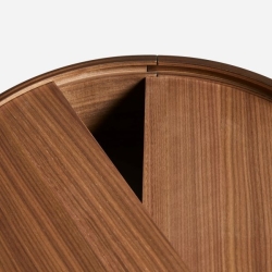 ARC -sohvapöytä leikittelee geometrisilla muodoilla: ympyrällä ja sen sektoreilla. Kääntyvä pöydän kansi kätkee sisäänsä kätevää säilytystilaa, joka joko piilottaa ei-toivotun tavaran, tai antaa mahdollisuuden sommitella esineitä kiinnostavasti kahteen tasoon.