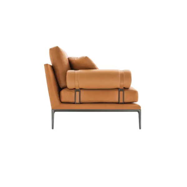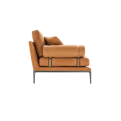 Rungoissa on kevyet, hoikat linjat, ja ne on kiinnitetty korkeisiin painevalettuihin tukiin, joiden metalliprofiilit korostavat rakenteen ja verhoilun eroavaisuutta hienostuneesti. Ilmeelle antaa lisää luonnetta myös pyöreä tyynyelementti, joka voidaan sijoittaa haluttuun paikkaan - se on kiinnitetty nahkahihnoilla painevalettuun rakenteeseen. Tämä lisävaruste voidaan asettaa istuintyynyn ja istuinosien väliin antamaan lisätukea tai se voidaan haluttaessa käyttää käsinojana tai selkänojana.