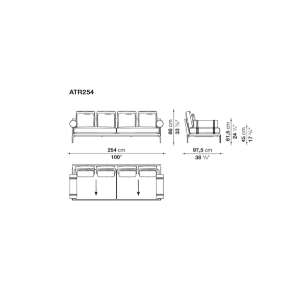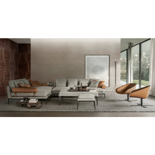 Tasapainoinen, esteettinen ja elegantti järjestelmä perustuu kolmeen perusrunkoon, joita täydentävät käsinojat ja selkänojat, muodostaen erilaisia istuimia: sohvia eri syvyyksillä, divaaneja samoin, kulmapäätymoduuleja, yksittäisiä tai modulaarisia elementtejä divaanilla ja raheja.