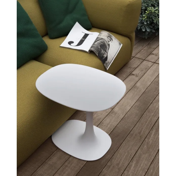 Elegantin epäsymmetrinen Awa Outdoor on monikäyttöinen pikku pöytä, joka sopii myös ulkokäyttöön.