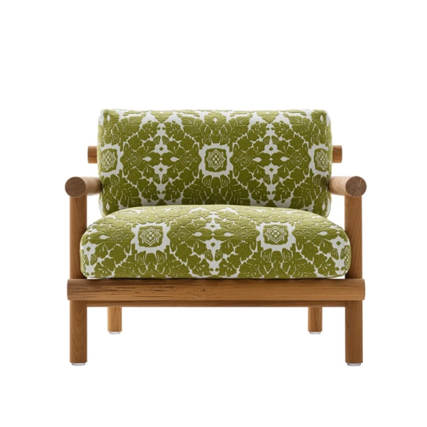Minimalistinen ja innovatiivinen, miellyttävällä itämaisella otteella Ayana-ulkotuoli on hymni puulle. Kun syvyydet ja korkeudet ovat selkeä viittaus Kaakkois-Aasian perinteeseen, selkänoja muistuttaa tikaspuuta, joka on muutettu kantavaksi elementiksi. Tämän ratkaisun ansiosta tämä nojatuoli voidaan sijoittaa myös huoneen keskelle, mikä luo tyylikkään lomittelun ja mittasuhteiden vuorovaikutuksen. Korkea käsinoja varmistaa ergonomisen asennon. Ayana-nojatuoli on osa kattavaa tuoleja, pöytiä ja pieniä pöytiä, joissa on vihreä sielu. Kehyksissä käytetty tiikkipuu on FSC® (Forest Stewardship Council) -sertifioitu ja kaikki sarjan eri elementit muodostavat materiaalit on suunniteltu erotettavaksi ja hävitettäväksi ympäristöystävällisesti tuotteen elinkaaren lopussa.