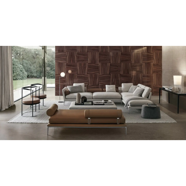 Tasapainoinen, esteettinen ja elegantti järjestelmä perustuu kolmeen perusrunkoon, joita täydentävät käsinojat ja selkänojat, muodostaen erilaisia istuimia: sohvia eri syvyyksillä, divaaneja samoin, kulmapäätymoduuleja, yksittäisiä tai modulaarisia elementtejä divaanilla ja ottomaaneja/raheja.