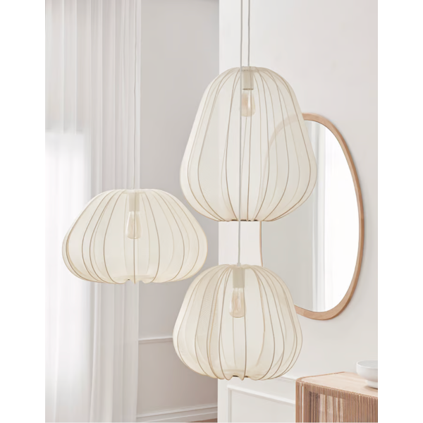 Anna kotisi valaistukselle uusi ulottuvuus Bolia.comin Balloon-riippuvalaisimella, joka on päällystetty elegantilla kankaalla. Tämä lumoava valaisin yhdistää pehmeän, lämpimän valon ja hienostuneen tekstiilin tuoden huoneeseen kodikasta tunnelmaa ja modernia eleganssia. Balloon-riippuvalaisin on suunniteltu tuomaan tilaan ainutlaatuista tyylikkyyttä. Sen kevyt, leijuva muotoilu muistuttaa ilmavaa ilmapalloa, joka luo huoneeseen ilmavuuden ja tilavuuden tuntua. Kangaspäällyste lisää valaisimeen tekstuuria ja pehmeyttä, tehden siitä täydellisen valinnan niin olohuoneeseen, ruokailutilaan kuin makuuhuoneeseen. Jokainen Balloon-riippuvalaisin on taidokkaasti käsintehty, mikä takaa sen ainutlaatuisuuden ja laadun. Kangaspäällyste tuo valaisimeen pehmeyttä ja eleganssia, mikä tekee siitä erinomaisen katseenvangitsijan missä tahansa huoneessa. Tämä valaisin ei ole vain käytännöllinen valaistusratkaisu, vaan myös upea sisustuselementti, joka lisää tilan viihtyisyyttä ja charmia. Tuo kotiisi Bolia.comin Balloon-riippuvalaisimen hienostunut hehku ja nauti valon ja kankaan täydellisestä harmoniasta.