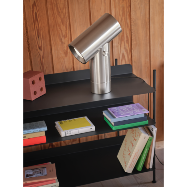 Yksinkertaisen arkkitehtooninen, sylinterimuotoon perustuva Beam pöytävalaisin valaisee molemmista päistään ja valon voimakkuutta on helppo säätää leikkisää napukkaa kääntämäällä.