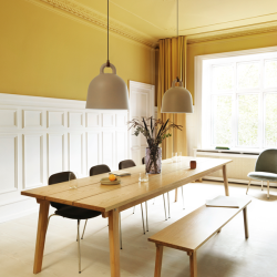 Bell-valaisin muistuttaa nimensä mukaisesti tukevaa kirkonkelloa, joka roikkuu ohuen narun varassa. Tanskalaiset muotoilijat Andreas Lund ja Jacob Rudbeck suunnittelivat tämän yksinkertaisen kauniin kattovalaisimen, joka ei taatusti jää huomaamatta. Valaisimen ulkopinta on matta ja sisäpuoli on kaikissa värivaihtoehdoissa valkoinen. Sähköjohdon liitoskohta on kauniisti viimeistelty. Pienemmät Bell-valaisimet voi ripustaa helposti ryhmäksi vaikka keittiöön, isompi taas sopii katseenvangitsijaksi olohuoneeseen, ruokailutilaan, isoon eteisaulaan tai toimistoon.