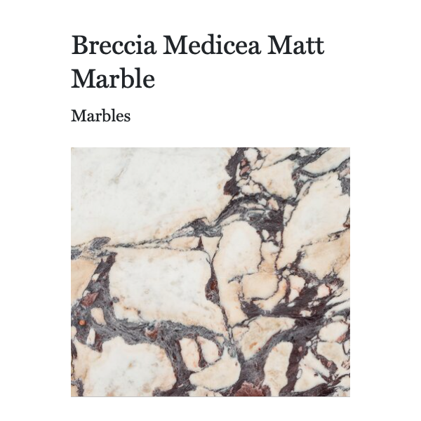 MATERIAALIT: Breccia Medicea marmori, matta, pronssipinnoitettu messinkilevy, puinen sisäkehikko ja jalka