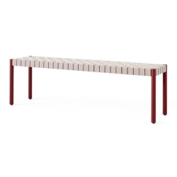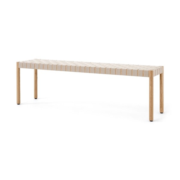 Betty-penkin funktionaalisen simppeliin ilmeeseen tuo lämpöä pellavainen satulavyöpunos, jolle penkin harkittu sävymaailma tuo oikeutta.