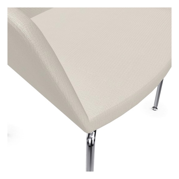 Materiaali: 14 mm kromatut teräsputkijalat, pyökkivaneri, paloturvallista ja joustavaa polyuretaanivaahtoa, kangasverhoilu, polypropyleenitassut