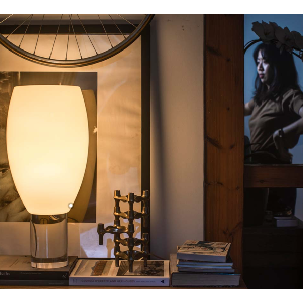 "Lämmin valkoinen" versio näyttää norsunluunväriseltä lampun ollessa päällä ja pysyy valkoisena sammutettuna. Jalusta koostuu täysin läpinäkyvästä PMMA-sylinteristä, joka on jyrsitty kuvion mukaan ja käsin kiillotettu peilikiiltäväksi.