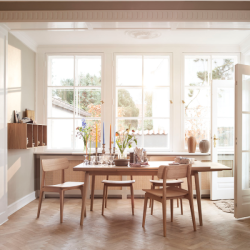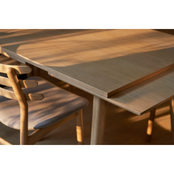 C65 Åstrup-ruokapöytä on jatkettavissa ulos vedettävien siivekkeiden (Dutch pull-out) avulla 170 sentistä 280 cm:n pituuteen.