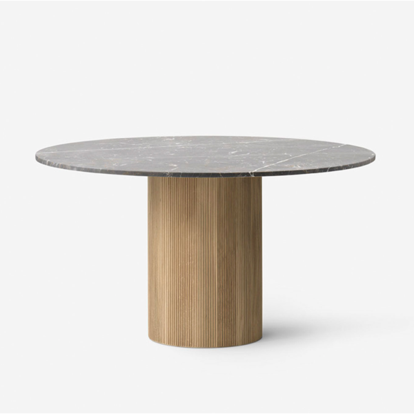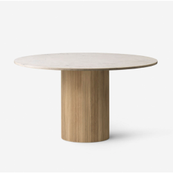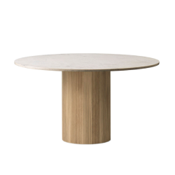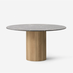 Vipp Cabin pyöreä pöytä on keskikokoinen pöytä ruokasaliin tai keittiöön. Pöydän jalusta on öljyttyä tammea, ja kansi on marmoria. Kannen värin voit valita kahdesta upeasta vaihtoehdosta: vaaleanbeige tai vaaleanharmaa marmori. Huomaa, että jokaisella marmorilevyllä on ainutlaatuinen visuaalinen ilme.