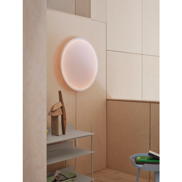 Mattapintainen kuminauha kehystää Calm-seinävalaisinta, joka antaa terävän säväyksen sen orgaanisen muotoilun pehmeydelle.