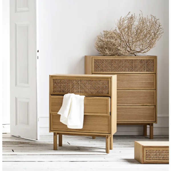 Tässä Cana Dresser lipastossa on kaksi vetolaatikkoa, ja ylimpänä pieni kippiovellinen kaappi kauniilla rottinkiovella. Lipastosta saa myös korkeamman version. Tuotetta saa kahdella eri pintakäsittelyllä (öljyttynä tai valkoöljyttynä tammena), tämä verkkokauppamme versio on öljytty. Muut versiot tuotteesta tilattavissa liikkeemme kautta!