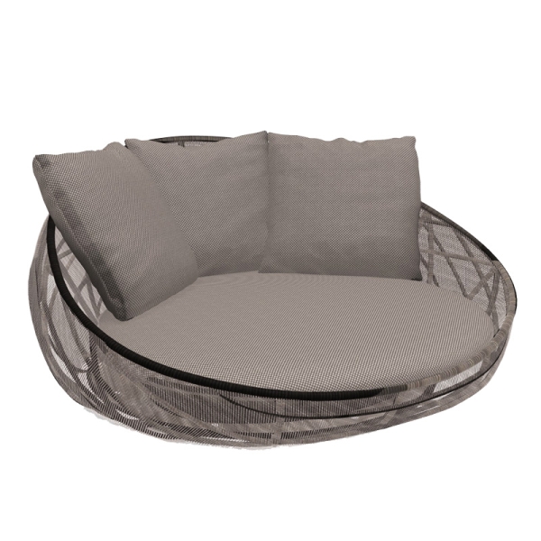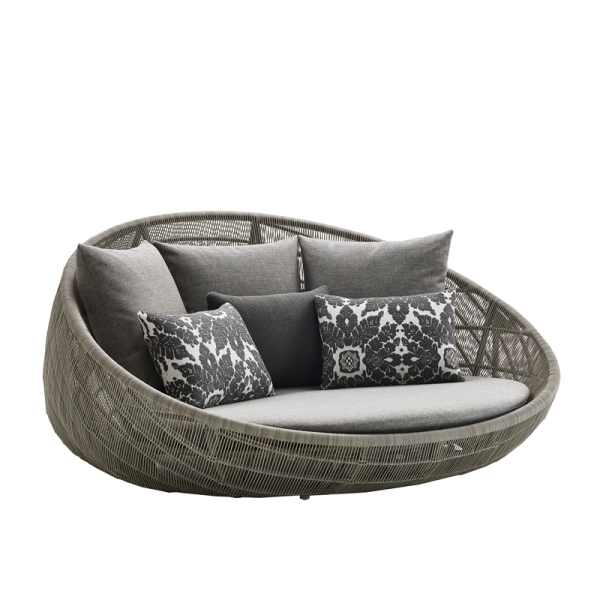 Tämä pesämäisen pyöreä Canasta ’13 Circular sohva (malli CNC160B1) kutsuu loikoilemaan. Syvässä, pyöreässä sohvassa on alla pienet renkaat siirtelyn helpottamiseksi. Sohvaan on saatavilla myös yhteensopiva, auringolta suojaava lippa. Istuintyynyn lisäksi kokonaisuutta on täydennetty kolmella selkänojatyynyllä ja kolmella pienellä heitotyynyllä (voit halutessasi jättää pikkutyynyt pois tilauksesta). Verhoiluvaihtoehtoja ja -yhdistelmiä on tarjolla lukuisia erilaisia. Jos olet kiinnostunut sohvasta toisenlaisena versiona, ota yhteyttä suoraan liikeeseemme!