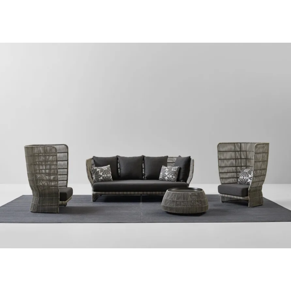 Canasta ’13 sohvaa saa kahdessa eri pituudessa (194 tai 229 cm), ja lisäksi sarjaan kuuluu pyöreä, pesämäisen syvä sohva. Tämä verkkokauppamme versio on 226 cm pitkä malli CNC226B, joka on täydennentty lisäksi kolmella selkänojatyynyllä ja kahdella pienellä, kuviollisella heitotyynyllä.