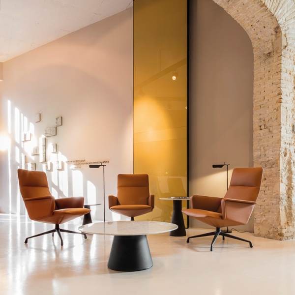 Capri Lounge Chair BU1963 on pyörivä käsinojallinen nojatuoli, joka sopii niin koteihin, kuin julkisiin tiloihinkin. Capri -tuoliperheeseen kuuluu niin ruokailu-, työ- kuin nojatuolejakin erilaisilla jalkavaihtoehdoilla varustettuna.