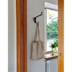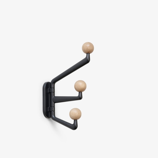 Capturen runko on pulverimaalattua metallia, ja sen pyöreät nupit massiivitammea. Voit valita kahden värivaihtoehdon väliltä; naulakon runko on aina graniitin musta, mutta nupit joko tammisia tai leikkisän monivärisiä.