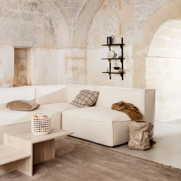 Tämä moduuli on kulmapala, mutta voit käyttää sitä myös sohvan päätypalana. Tämä Corner-moduuli on Armrest End-moduuleja lyhempi. Corner-moduuli on symmetrinen, joten voit käyttää sitä niin sohvan oikeaan kuin vasempaankin kulmaan sekä molempiin päätyihin.