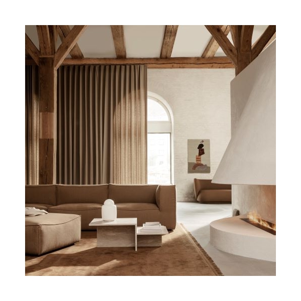 Catena sohvan kauniisti viimeistellyt saumat ovat saaneet innoituksensa pehmeistä roikkuvista kaarista, jotka tukien varaan ripustettu metalliketju muodostaa. Verhoilutekstiileiksi on valittu eläväpintaisia pellava- ja pellava-puuvillasekoitekankaita, joissa on miellyttävä tuntu.