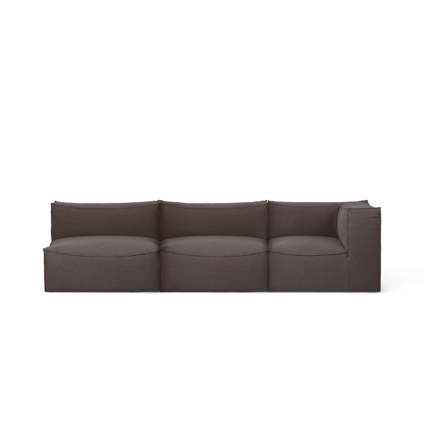 Tässä sohvassa on kaksi selkänojallista Center-moduulia, sekä oikeassa päädyssä kulmapala. Kulmapalan voit asentaa kumpaan tahansa päätyyn. Tässä versiossa moduulit ovat kokoa small (95x95 cm), mikäli haluat syvemmän version sohvasta, valitse large-kokoiset erilliset moduulit, tai ota yhteyttä suoraan myymäläämme.