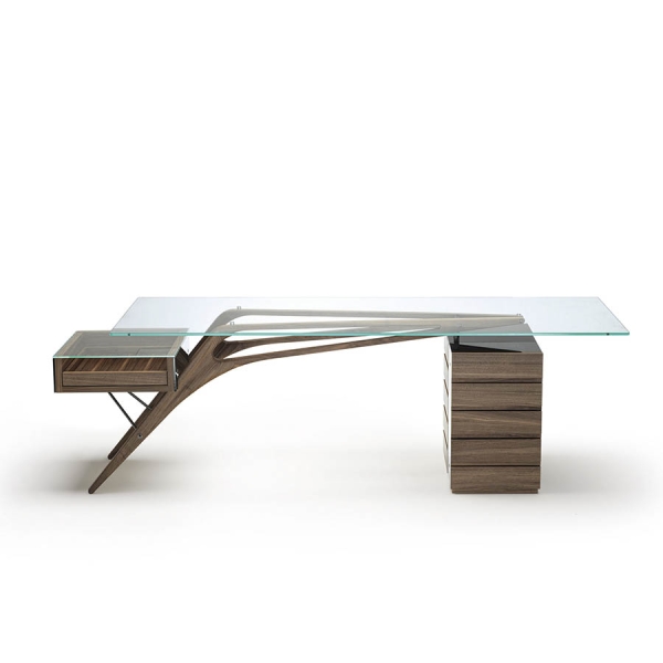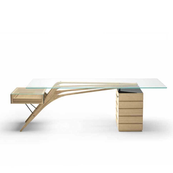 Pyynnöstä saatavilla Executive-sarja, joka sisältää ulosvedettävän avoimen tarjottimen ja ensimmäisen laatikon, joka on päällystetty mustalla lehmännahalla 95, yhden pöytäpehmusteen mustaa lehmännahkaa 95, koko cm. 80x50 ja yksi kynäpidike massiivipuuta, valmistettu samalla viimeistelyllä kuin kirjoituspöytä.