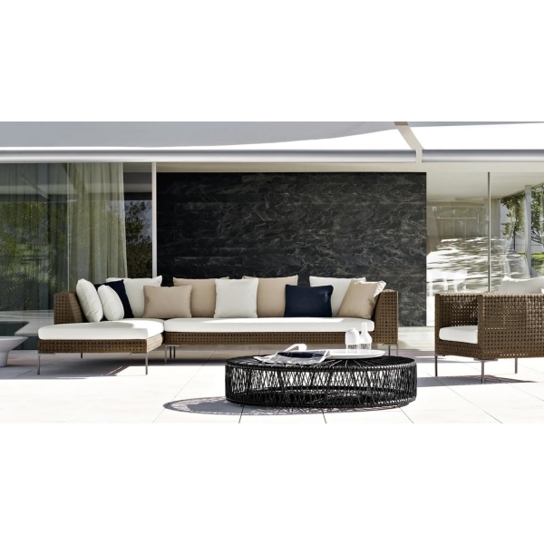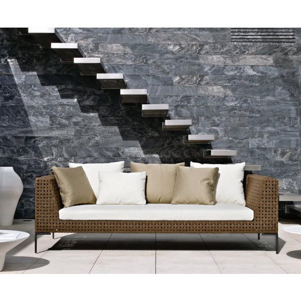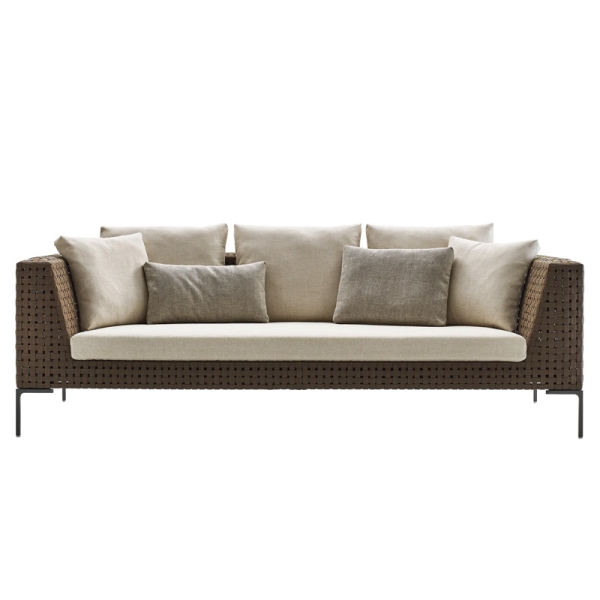 Charles Outdoor-sohva erottuu ajattomalla estetiikallaan. Sen sisärunko on kevyttä alumiinia, jonka päälle on punottu polypropyleeninauhasta kestävä, mutta ilmava runko. Pehmeä istuintyyny ja vapaasti liikuteltavat heittotyynyt takaavat istuinmukavuuden. Verhoilut ovat irrotettavissa.