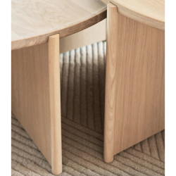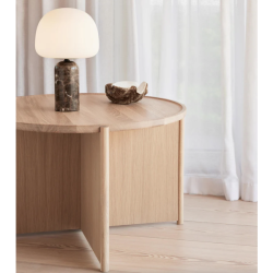 Pöydän ulkonäkö on minimalistinen ja samalla lämmin ja se sopii käytettäväksi sekä yksinään että yhdessä sisarsohvapöytänsä kanssa tilan optimoimiseksi, sillä saatavilla on 2 eri korkuista kokoa.