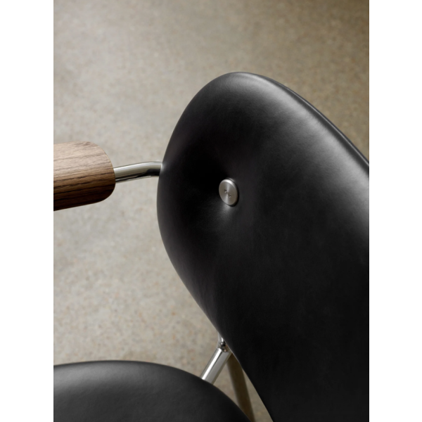 Materiaali: kromattu teräs, muotoontaivutettu pyökkivaneri, tammivaneri, vaahtomuovi, verhoilu Dakar nahka