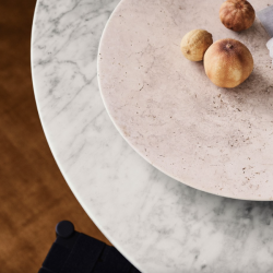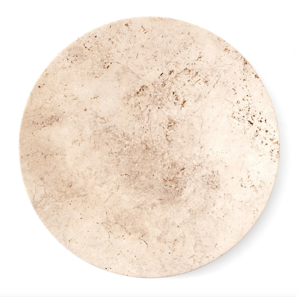 Space Copenhagenin suunnittelema, käsin kiillotettu, travertiini-lautanen kuuluu Collect-sarjaan, joka on kauniisti muotoiltujen sisustustekstiilien ja kodintarvikkeiden kuratoitu mallisto. Jokainen beigestä travertiinikivestä valmistettu lautanen on ainutlaatuisen tekstuurinen kappale, jossa on oma luonnollinen kuviointinsa.